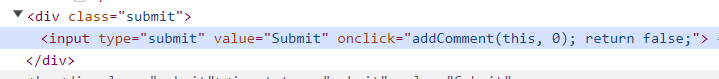 <input type="submit" value="Submit" onclick="addCommentCustom(this, 0); return false;" />