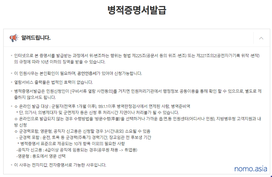 그리고 병적증명서 출력까지 이상 없이 마칠 수 있었다.
