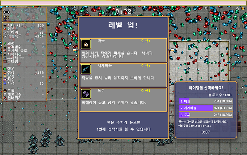 이번달 초부터 Twitch 에는 뱀파이어 서바이버라는 게임이 유행이다. 지난 일요일에 사신런을 달리는 풍월량님 방송을 보는데, Twitch 시청자가 아이템을 선택할 수 있는 기능이 추가되면 재미있을 것 같다는 이야기가 도네이션과 채팅 등에서 나왔다.