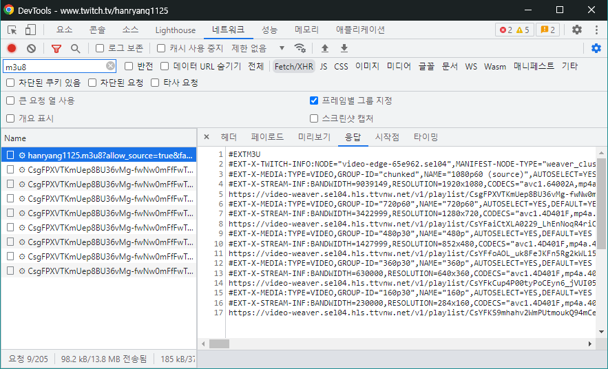 - 새로고침 후, 리스트 최상단의 것을 선택한다. (master playlist)