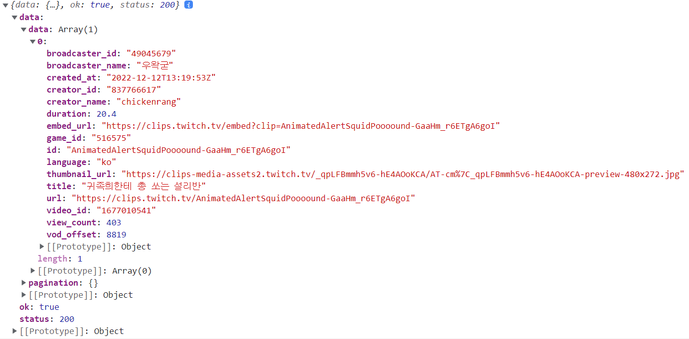한국 ip 로 Twitch Helix API 에 Clip data 요청 시 data 가 [] 로 리턴됨.