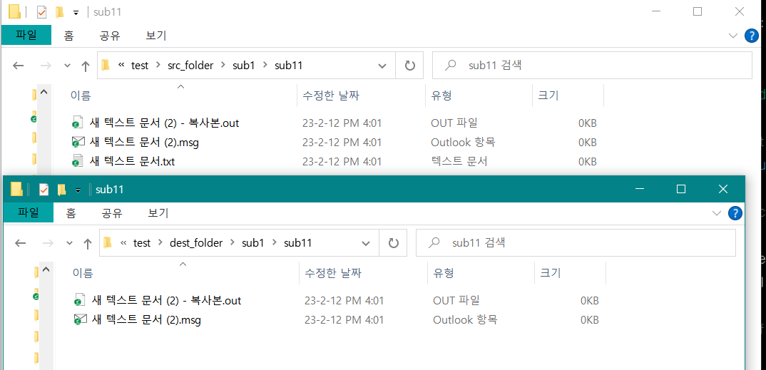 실행 결과 특정 확장자를 가진 파일이 생성되는 경우에는 아래와 같이 정상적으로 복사되는 것을 확인할 수 있었다.
