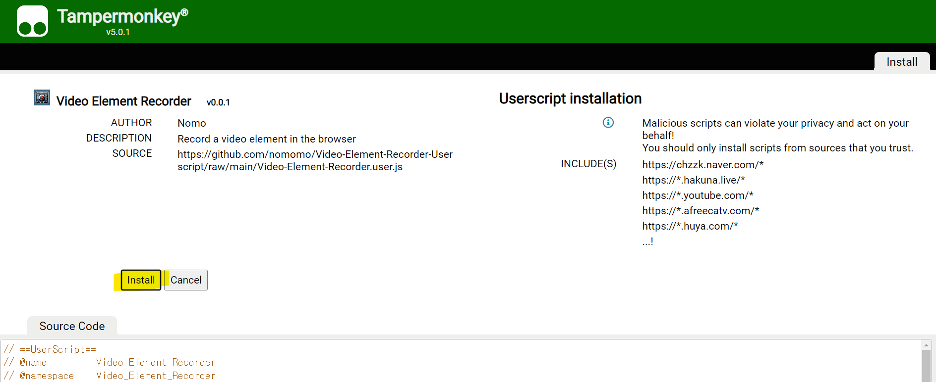 이 UserScript의 전체 코드와 설치 방법은 GitHub에서 확인할 수 있다. https://github.com/nomomo/Video-Element-Recorder-Userscript/.