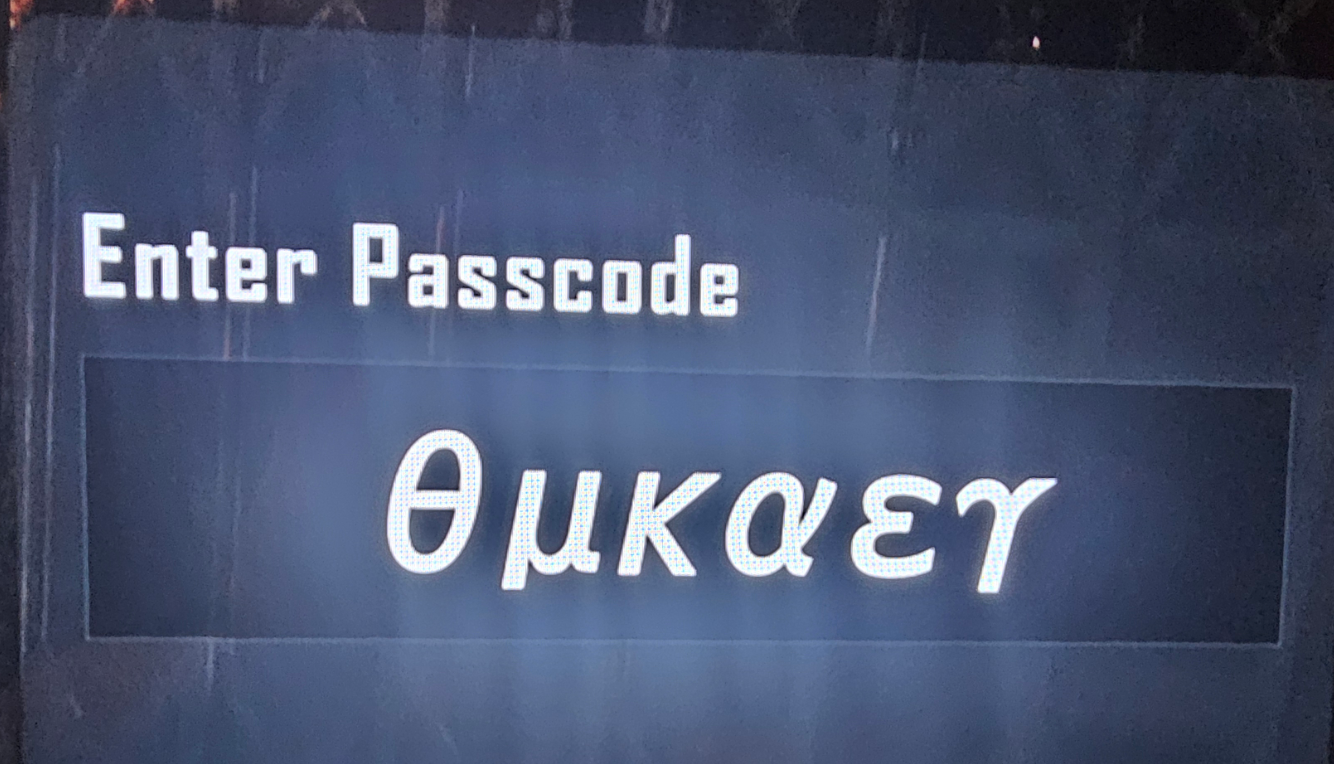 힌트에 따라 시계방향으로 입력하면 된다는 것까지는 다들 이해했을텐데, 가장 중앙에 있는 문자(μ)를 두번째로 입력해야 한다는 것이 포인트였다. 아마 나처럼 해당 문자를 다섯번째로 θ κ α ε μ γ 와 같이 입력해서 막힌 사람들이 있었을듯.